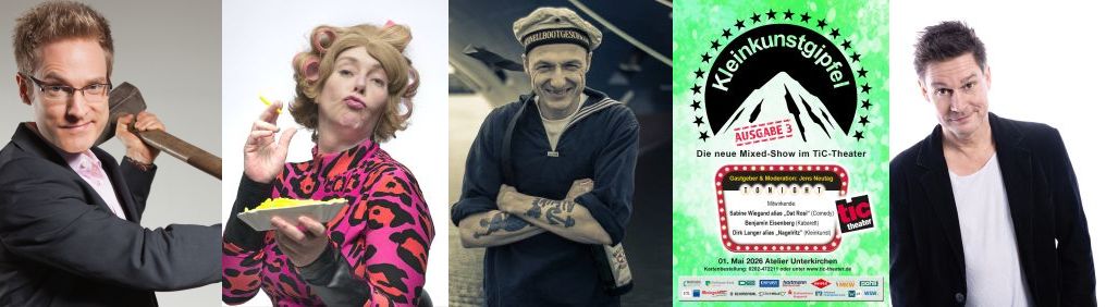 ersten Halbjahr 2026 gibt es wieder einen „Kleinkunstgipfel“ im Atelier des TiC-Theaters, bei dem sich die Stars der Kabarett- und Comedyszene die Klinke in